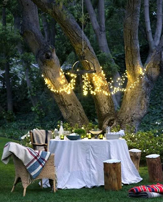 Hang lanterns and fairy lights in the trees,